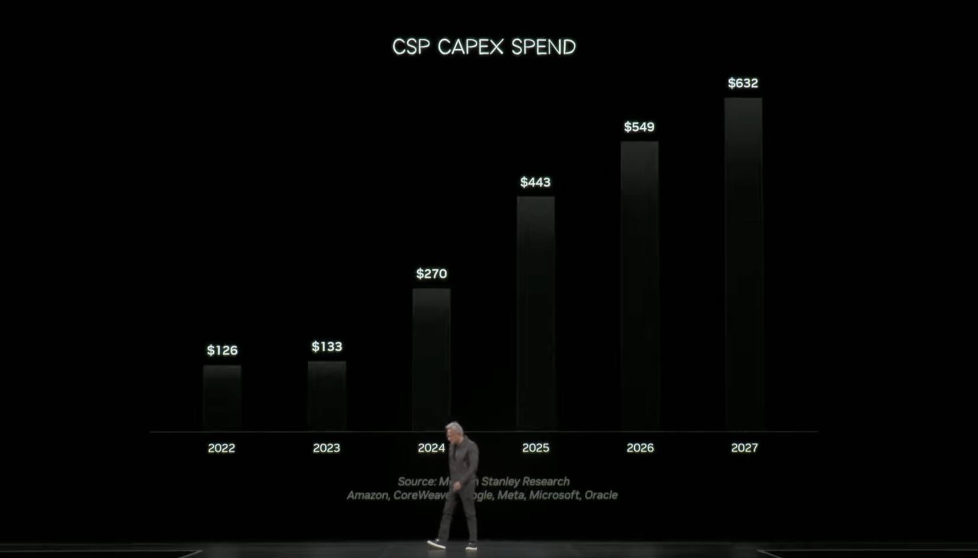 參考 NVIDIA 於近期 GTC 大會中簡報,預期 2026 年 CSP (主要為 Hyperscaler) 資本支出將較今年再增加約 1000 億美元 / 成長 +24%,高於年中時市場預期成長幅度僅 +15~20%。